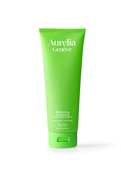 Aurelia Geneve Matcha Cleanse Glow Green Vegan Purifying Gel cildi kurutmadan fazla sebumu, makyajı ve kirleri nazikçe temizleyen günlük jel temizleyicidir