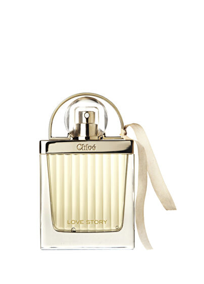 Chloé Love Story Eau de Parfum, aşk ve romantizmi sembolize eden bir asma kilit tasarımı olan şişede sunuluyor ve üzerinde bulunan kurdele, kıvrımlı cam tasarımdaki kadınsallığı tamamlıyor