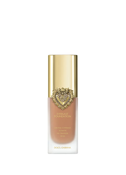 Everlast Foundation, şık bir cam şişede, altın kapaklı ve ikonik Dolce&Gabbana Sacred Heart mühürlü olarak sunulur