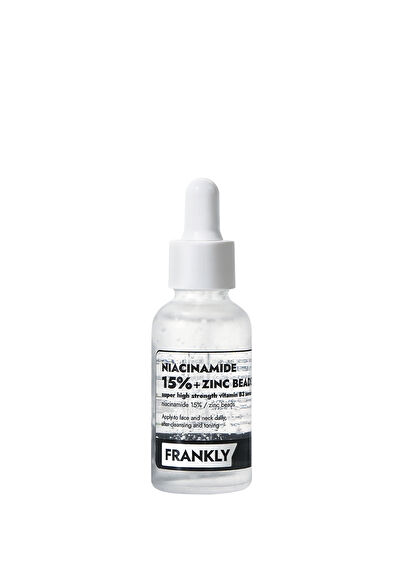Frankly Niacinamide 15% + Zinc Beads Serum, 15% oranında saf Niacinamide (Vitamin B3) ve cilt dengesini koruyan Zinc PCA kapsüllerini bir araya getirir