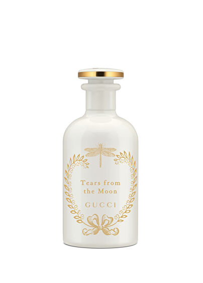 Tears from Moon Eau de Parfum erkekler ve kadınlar için, Beyaz Şakayık, Vadi Zambağı ve Madagaskar Yasemini'nden oluşan beyaz çiçek buketi etrafında oluşturulmuş bu aydınlatıcı Gucci kokusunu temsil eden bir yusufçuk ile süslenmiştir