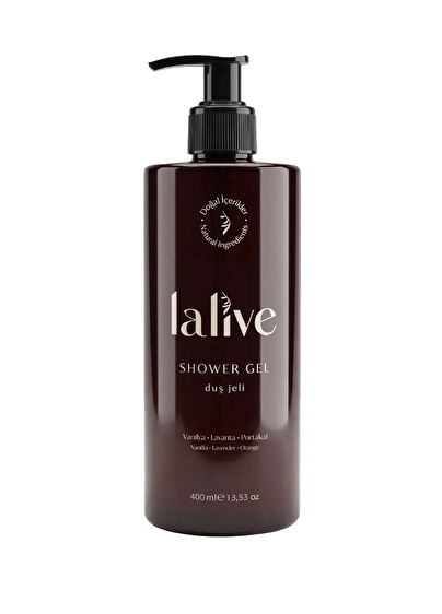 Vanilya, lavanta ve portakalın dengeli ve zarif notalarıyla formüle edilen Lalive Doğal Duş Jeli, cildi nazikçe arındırırken aynı zamanda bakım sağlar