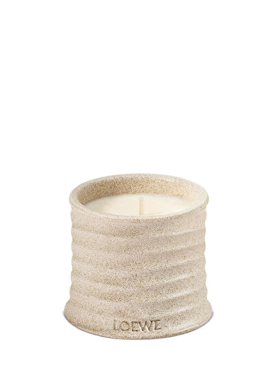 LOEWE Home Scents Textura koleksiyonunun bir parçası olan ve Home Scents serisine dokunsal bir boyut katan Tuberose kokulu mum, el yapımı sırla kaplanmış seramik bir kapta sunulmaktadır