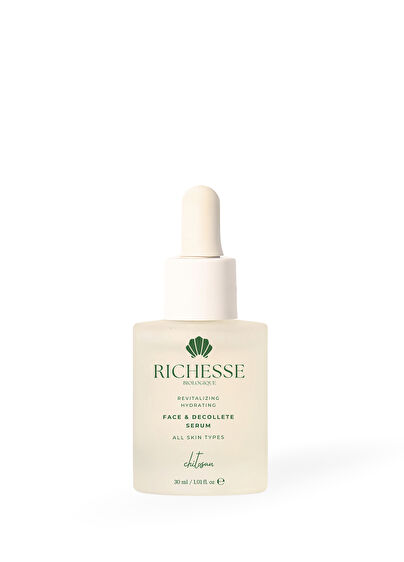 Chitosan'ın dönüştürücü gücünü RICHESSE BIOLOGIQUE Face & Decollete Serum ile keşfedin: Cildinizin sağlığına bugün ve yarın daha sürdürülebilir bir güzelliğe olan bağlılığınız