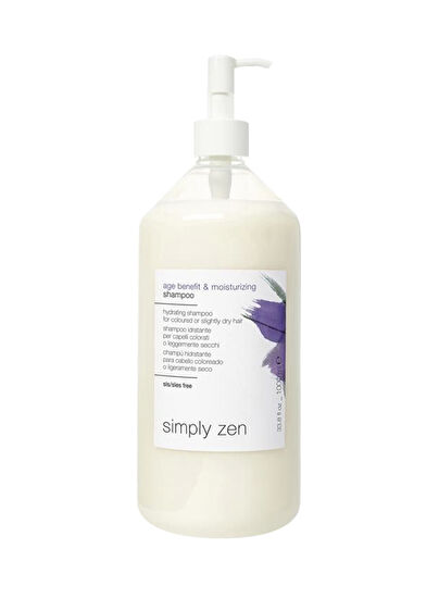 Simply Zen Age Benefit&Moisturizing SLS ve SLES içermeyen formülü ile dengeli ve spesifik bir şekilde temizleyen zengin ve koruyucu bir şampuandır