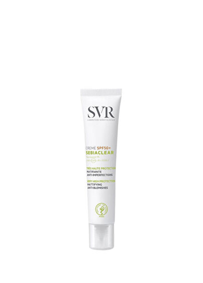 Sebiaclear Crème SPF50, güçlü güneş koruması sağlarken, akne ve akne nedeniyle oluşan izlere karşı savaşmaya yardımcı olur, gün boyu cildin nemliliğini ve mat görünüme kavuşmasını destekler