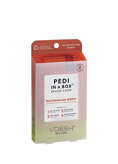Pedi in a Box Deluxe Pedikür 4 Adım, evde kolayca uygulayabileceğiniz lüks bir spa pedikür deneyimi sunar